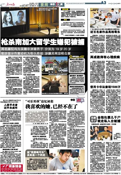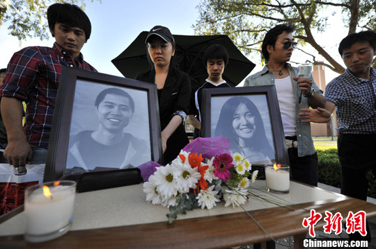 误贴"富二代"标签网络掀骂战 亲友吁不要冷嘲热讽 时间:美国时间4月11日凌晨1时许 地点:洛杉矶南加州大学附近 人物:两名23岁的中国留学生,情侣 事件:两名留学生在车内遭匪徒枪击,女生死于车内,男生奔至附近住宅求救,被射死。 两人均不到24岁 遇害前一个在做实验 一个在图书馆看书 (April 11, 2012)